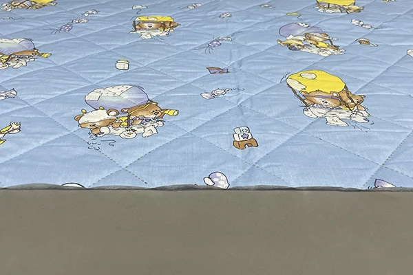 Верхнее покрытие матраса поликоттон с детским рисунком - материал, состоящий из натуральных волокон хлопка с добавлением синтетического волокна: полиэстра. Соотношение синтетической составляющей в материале варьируется от 35% до 80%. Чем больше синтетических нитей, тем выше показатели износостойкости. Поликоттон широко используют при производстве постельного белья, подушек, одеял, наматрасников, а также чехлов на матрасы.